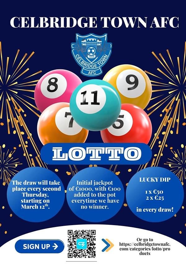 Celbridge Town AFC Lotto kicks off this week with our first draw this Thursday the 12th of March.